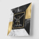 Relógio Quadrado Estilo Art Deco Marble e Monogramas Dourados