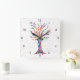 Relógio Quadrado Estrelas Douradas da Árvore Arco-Íris