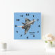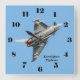 Esta foto do tufão do Eurocaça vista de baixo e voando num céu azul puro, decora um relógio quadrado com números negros. O tufão do Eurocaça é o avião de combate multi-papel mais avançado, de asa oscilante, do mundo, pelo que este relógio é um presente de excelente para um entusiasta da aviação. Também disponível em uma versão redonda.