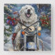 Relógio Quadrado Excelente Pirenéus Cão Dirigindo Moto Natal