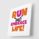 Relógio Quadrado Executar e Embarcar a Vida Cor-de-Rosa Laranja