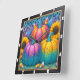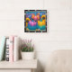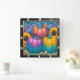 Esse vibrante relógio de parede quadrada apresenta três abóboras brancas, pontilhadas por polca em um gradiente gradiente de laranja, rosa e azul, cercadas por girassóis ouros e milho doce espalhado. Colocada contra um fundo de impressão leopardo lúdico, esta design única e colorida traz uma reviravolta festiva e moderna para a decoração do outono.