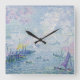 Relógio Quadrado Fine Art Painting Sea Port Ships Bridge Light Blue