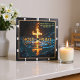 This incredibly moving and symbolic design powerfully conveys the theme of Flame and Water—the spiritual cleansing and empowering baptism of the Holy Spirit. The artwork, featured on a square wall clock, displays a vivid cross made entirely of fire rising dynamically from dark, rippling water. The bright cross is beautifully reflected in the liquid below, emphasizing the depth and reality of the divine message from Matthew 3:11: "He will baptize you with the Holy Spirit and fire." The visual combination of fire and water symbolizes purification and the transformative power of faith. The highest quality print and artwork used on the surface is so exceptional it creates a stunningly realistic tactile illusion; you could easily mistake the textures for genuine embossed metal or heavy, worn leather. This piece is a spectacular dedication to faith and the power of the Holy Spirit. this impressive, high-quality piece is a perfect gift for any devoted person, honoring their spiritual journey.