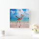 Este relógio de forma quadrada é mostrado com uma impressão de foto de um belo flamingo caminhando pela praia. Personalize este item ou comprar como está. Imagem de estoque
