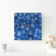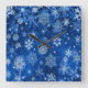 Relógio Quadrado Flocos de neve de Natal Azul e Prata