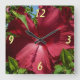 Relógio Quadrado Flor de Hibiscus e Céu Azul