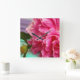 Relógio Quadrado Flor de Peônia Rosa Simples