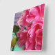 Este relógio de parede simples apresenta uma peônia rosa fotografada de perto para mostrar os detalhes das pétalas. Um relógio quadrado bonito e moderno que seria adequado para um quarto, sala de estar ou berçário.