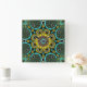 Relógio Quadrado Flor Fractal Azul e Dourada