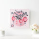 Relógio Quadrado Flores azuis "Suba acima" design asiático