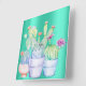 Relógio Quadrado Flores De Cactus - Pintura Rosa De Coral