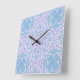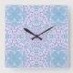 Relógio Quadrado Flores de jardim retrô em azul e violeta
