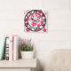 Relógio Quadrado Flores de papel vermelho e branco