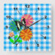 Relógio Quadrado Flores e borboleta em Vicky Azul