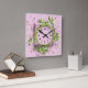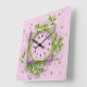 Relógio Quadrado Flores e estrelas cor-de-rosa