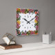 Relógio Quadrado Flores e folhas cor-de-rosa e amarelas