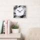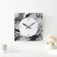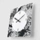 Relógio Quadrado Flores e pássaros pretos, brancos e cinzas