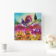 Paisagem colorida e vibrante da Toscana com púrpura, verde, castanha, cores brancas, flora de Verão, campos, prados, flores, árvores ciprestes, aldeia rústica antiga sob o céu azul.Pintura acrílica na canvas.