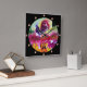 Paisagem colorida e vibrante da Toscana com púrpura, verde, castanha, cores brancas, flora de Verão, campos, prados, flores, árvores ciprestes, aldeia rústica antiga sob o céu azul.Pintura acrílica na canvas.