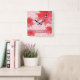Relógio Quadrado Flores Vermelhas Whimsical Folhas Suavemente Acres