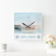 This clock features a vibrant reproduction of an original watercolor painting by Heather MacKenzie, capturing a truly heartwarming scene: a young girl, full of joy, running at low tide near the docks, her colorful kite soaring high above. It's a sweet reminder of carefree days and the simple magic of the coast.