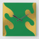 Relógio Quadrado Folha de Abstrato Verde Dourada Elegante