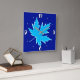 Imagem digitalmente melhorada de uma folha de carvalho em tons de azul-gelo e branco sobre fundo azul-cobalto profundo