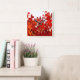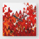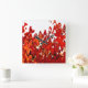 Um abstrato vibrante de vermelhos e laranjas das folhas de uma planta da Virgínia Creeper criando um efeito das chamas do fogo. Um design inspirado pela natureza.