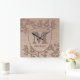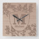 Relógio Quadrado Folhas gravadas de madeira nome monograma