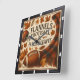 Este aconchegante relógio de parede quadrado captura a essência do outono com um clássico capacete de futebol americano, um futebol americano, e um cachecol de xadrez quente, cercado por uma abundância de folhas de carvalho e carvalho ricamente coloridas. O texto convidativo "FLANNELS FOOTBALL & FALLING LEAVES" faz dele uma peça decorativa perfeita para a temporada de outono.