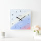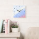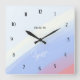 Featuring a soft diagonal gradient of light blue, blue, white, and pink — reminiscent of a serene sunset sky — with sleek black numbers and hands, this clock adds elegance and inspiration to your home or office.