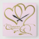 Relógio Quadrado Forever Corações Douradas cores de fundo editáveis