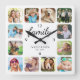 Crie o seu próprio relógio personalizado de keepape com linhas simples e limpas, com a "família" escrita no script moderno (você pode mudar isso), doze quadrados arredondados segurando suas fotos favoritas de família, animais de estimação, viagens ou outras memórias especiais e duas linhas de texto personalizável, como o nome da sua família e o ano estabelecido.