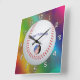 Relógio Quadrado Foto personalizada de fundo multicolorido do Baseb