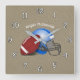 Um relógio de excelente para todos os adeptos de futebol — jovens ou velhos. O design apresenta um capacete de futebol e de jogador sobre um fundo bege, texturizado, com espaço reservado para um nome. O texto do nome é facilmente alterado usando o modelo. Para outras alterações desejadas (tipo de fonte, cor, tamanho ou posicionamento diferente), selecione "Personalizar este modelo" e selecione "Editar usando a Ferramenta Design". Use também a ferramenta design se quiser mudar o tamanho da imagem do futebol e do capacete. Verifique a seção de opções à direita para diferentes estilos de relógio e para uma cor diferente das mãos do relógio (preto ou cinza). Nota: este design também ajustado muito bem em um relógio de pulso (eWatch). Role até a seção "Transfer design to a product" (Transferir para um produto).