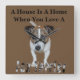 Em destaque está um Fox Terrier marrom e branco com o logotipo A Fox Terrier, uma casa é um logotipo doméstico.