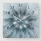 Relógio Quadrado Fratura Floral Abstrato Azul Cinza de Flor Alegre