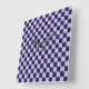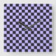 A checkerboard pattern with alternating lavender and black squares fills the image. The repeating geometric design gives a balanced and rhythmic appearance.