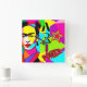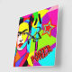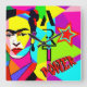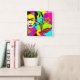 "Frida Lives" com um retrato colorido da pop de Frida Kahlo - Square Wall Clock, POP ART style by O.M design