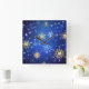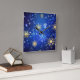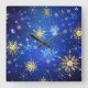 Relógio Quadrado Fundo Azul XMAS com Flocos de Neve Ouro