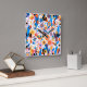 Relógio Quadrado Fundo Floral Multicolor Exótico-32939