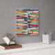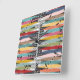 Este relógio da parede do gamão tem um design retroatômico com muitas cores antigas, símbolos atômicos e explosões usados nas peças de jogos. Um padrão super divertido para qualquer um que adora retro meios séculos modernos e o jogo do gamão. Mude o relógio de forma quadrada para forma redonda.