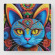 Relógio Quadrado Gato Abstrato Com Olhos Amarelos