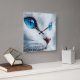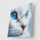 Relógio Quadrado Gato branco vertical com olhos azuis