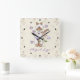 Relógio Quadrado Gato, flores e pulso de disparo de parede