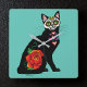 Gato negro com o dia da maquiagem do crânio de açúcar morto.
