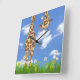 Relógio Quadrado Girafa com margarida no céu