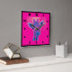 Uma pose engraçada de um girafa bonito - colando para fora sua língua, em cores de néon funky do rosa e do azul. tem-lhe uma sensação retro do pop art dos anos sessenta.