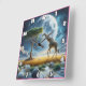 Relógio Quadrado Girafa graciosamente vagando sob uma lua radiante